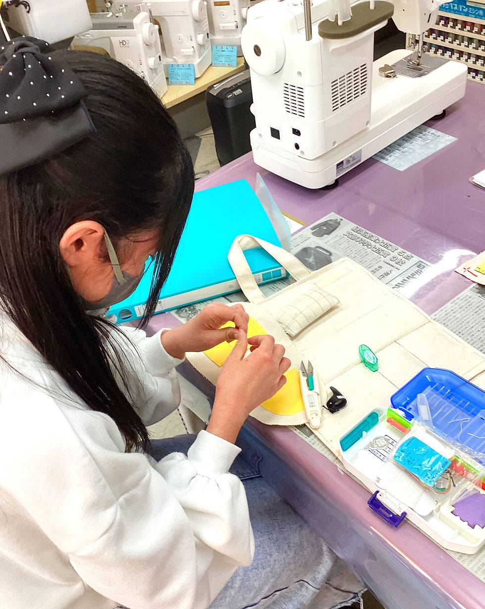 高校生のMちゃんは手縫いの工程をとても丁寧に縫っていましたよ。